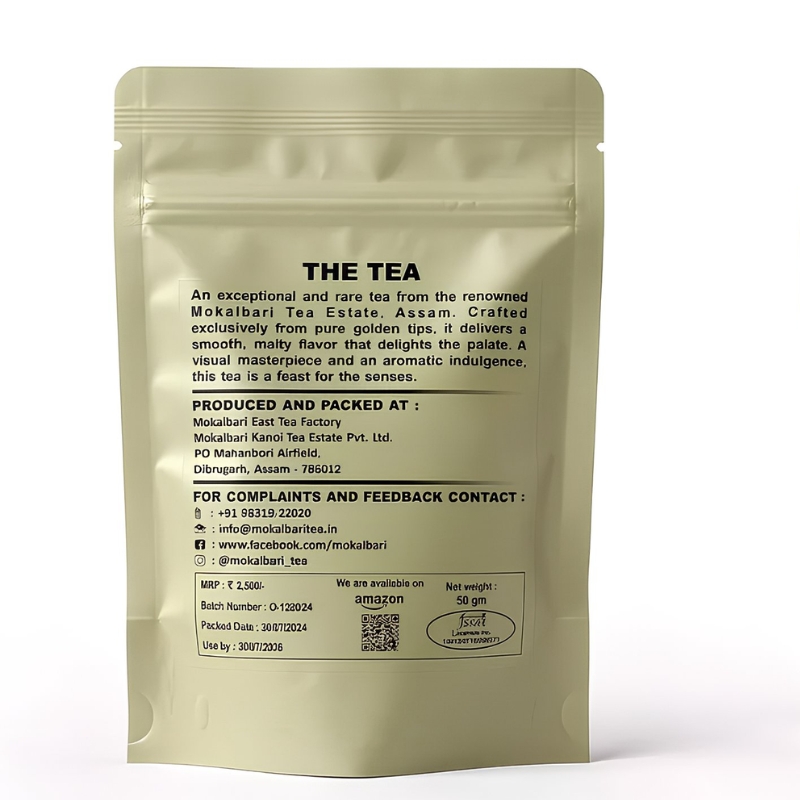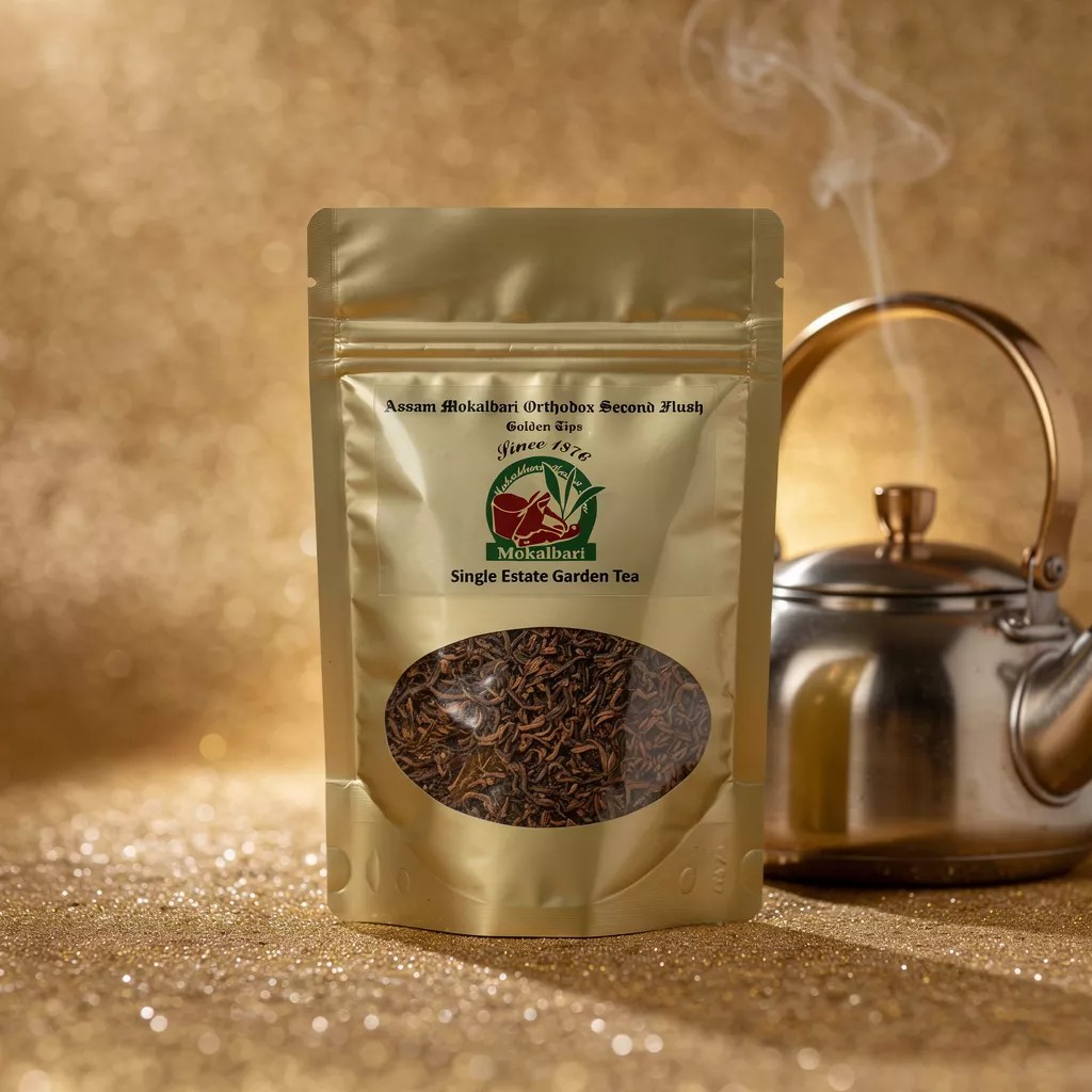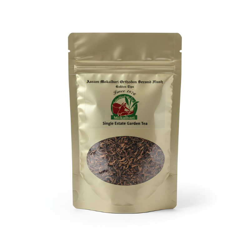 Mokalbari Golden Tips Tea is a prized expression of Assam’s finest Second Flush harvest. Crafted from select whole leaves and abundant golden tips, this tea is known for its depth, smoothness, and naturally rich aroma. The presence of golden tips enhances the cup with subtle sweetness, complexity, and a velvety mouthfeel.